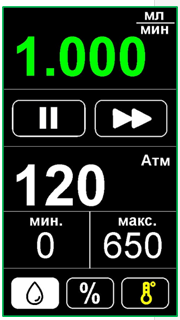 Объем жидкости, прокачиваемый за один цикл дозирования, составляет всего 8 мкл благодаря чему видимые пульсации отсутствуют уже на физическом уровне, без дополнительной обработки сигнала в ПО.
